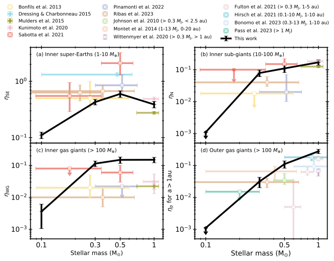 Fig.2: occurrence rate of different planet populations vs host star's mass.Â